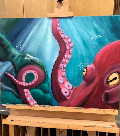 used on the eyes of the octopus. This painting is the second in a collection